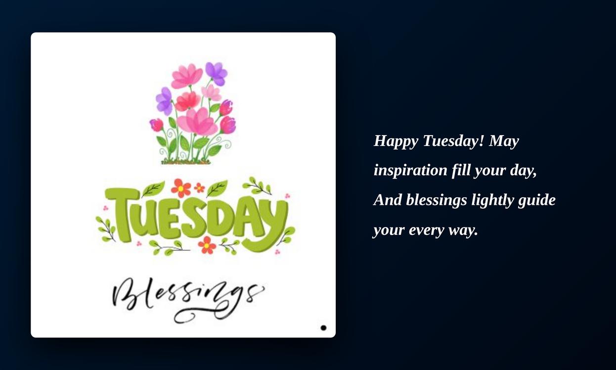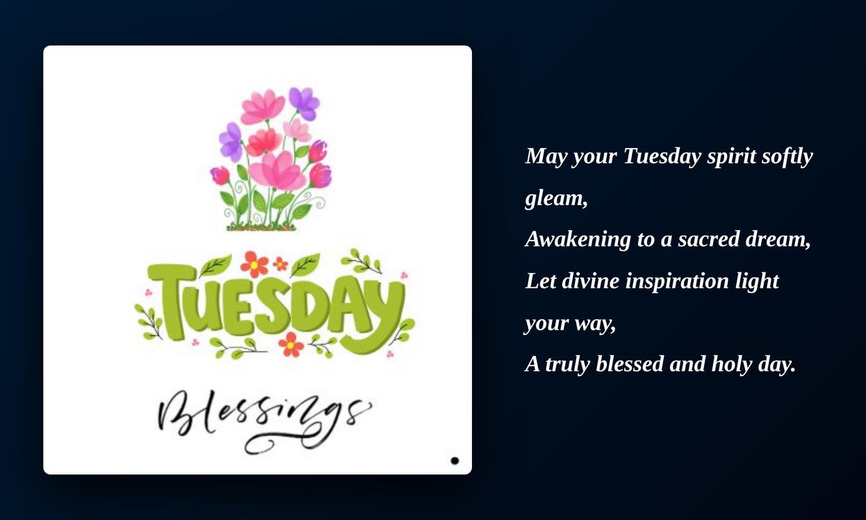 Inspiration Tuesday blessings, prayers, and quotes bring hope, strength, and motivation to the day. They help us stay positive, focused, and confident in our journey. Simple words of faith can lift the spirit and encourage us to move forward. By sharing these blessings, we spread inspiration and happiness to others. Keeping faith in our hearts makes Tuesday more meaningful and full of purpose.